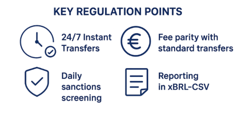 The EU Instant Payments Regulation (IPR – Regulation (EU) 2024/886) requires all Payment Service Providers (PSPs) that offer euro credit transfers – including banks, payment institutions, and e-money institutions – to also support instant SEPA credit transfers (≤10 seconds).