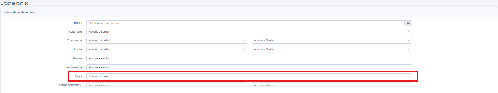 When creating a submission, you must now select the submission country, which will ensure automatic application of the corresponding country rules throughout the reporting workflow.
