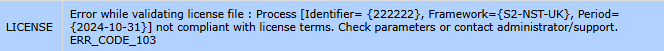 - During this phase, processing will not be interrupted in case of inconsistencies detected in the declarative data. However, a license error will be displayed to the user, along with a new return code (CR 4) to help identify the issue.